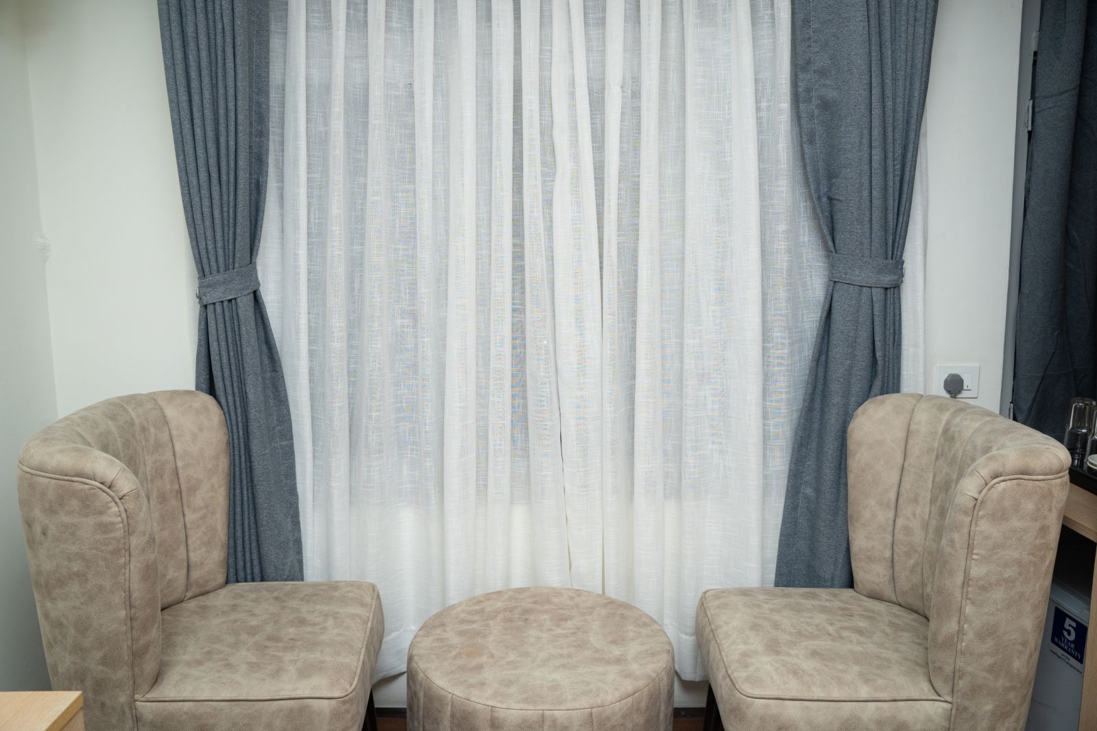 Unlike day curtains, night curtains are made from multi-layered heavy opaque fabric. The main purpose of a night curtain is to provide privacy. It blocks the sunlight and can create a cooling environment. This double-layered curtain can reduce noise coming from outside. Hence, our guests can completely enjoy their own desirable time without disturbance.