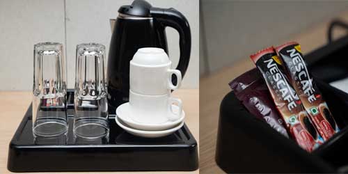 It is one of the first gifts we provide to our guests after arriving. This kettle set includes a coffee pouch, a sugar pouch, a cup, and a kettle (it depends according to the number of guests in a room). Our guests can enjoy hot or cold coffee after such a long journey.